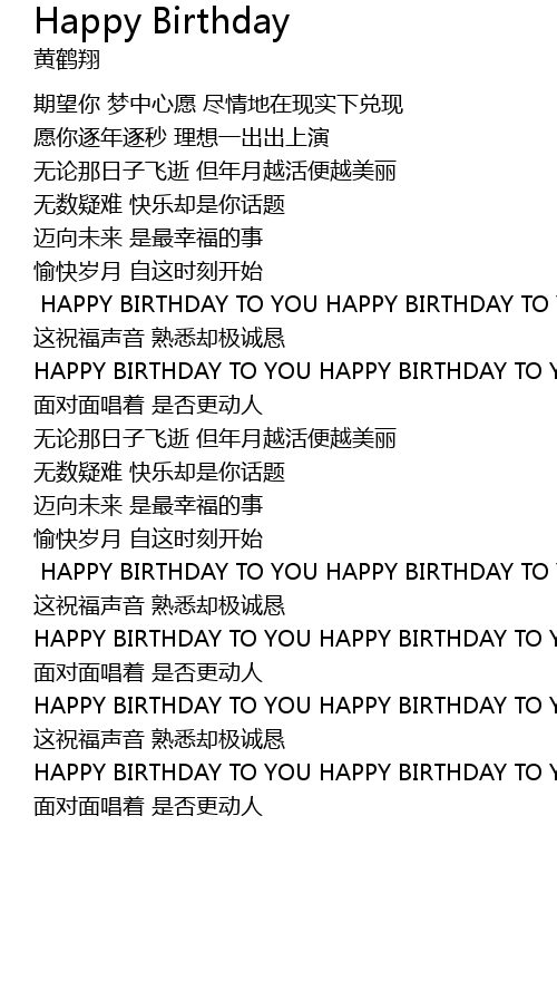 | [01:05.900] | HAPPY BIRTHDAY TO YOU HAPPY BIRTHDAY TO YOU |