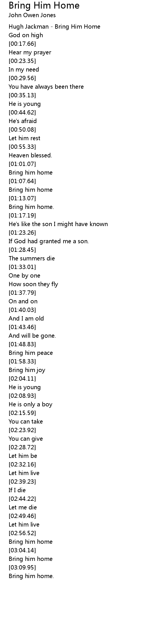 Hugh Jackman - Bring Him Home |