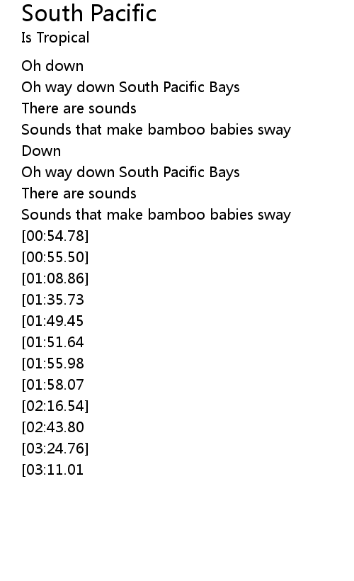 Oh way down South Pacific Bays |