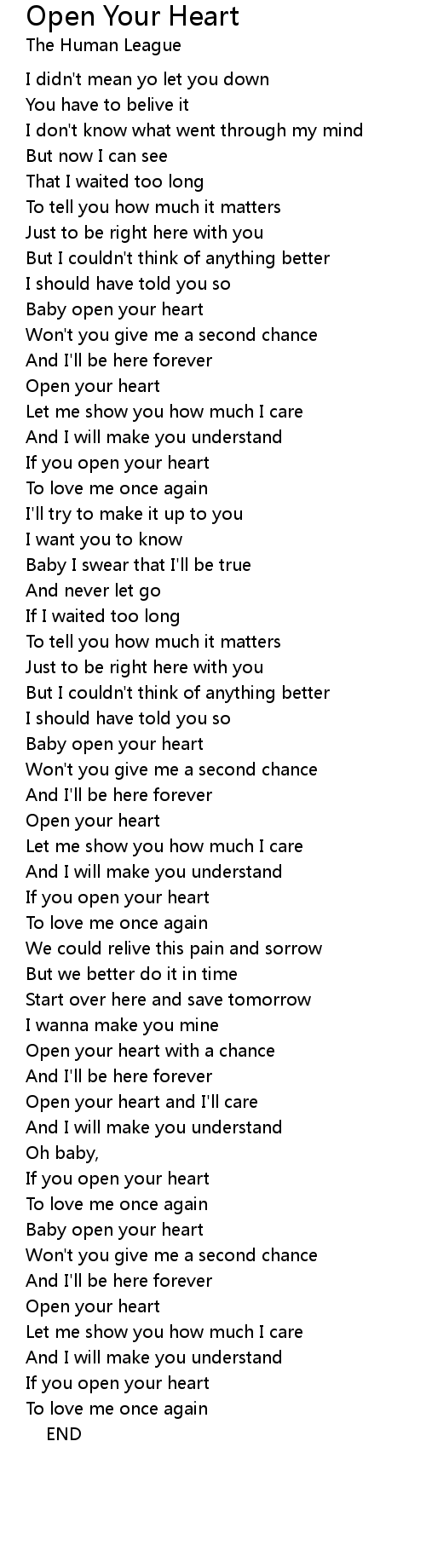 Open Your Heart Lyrics