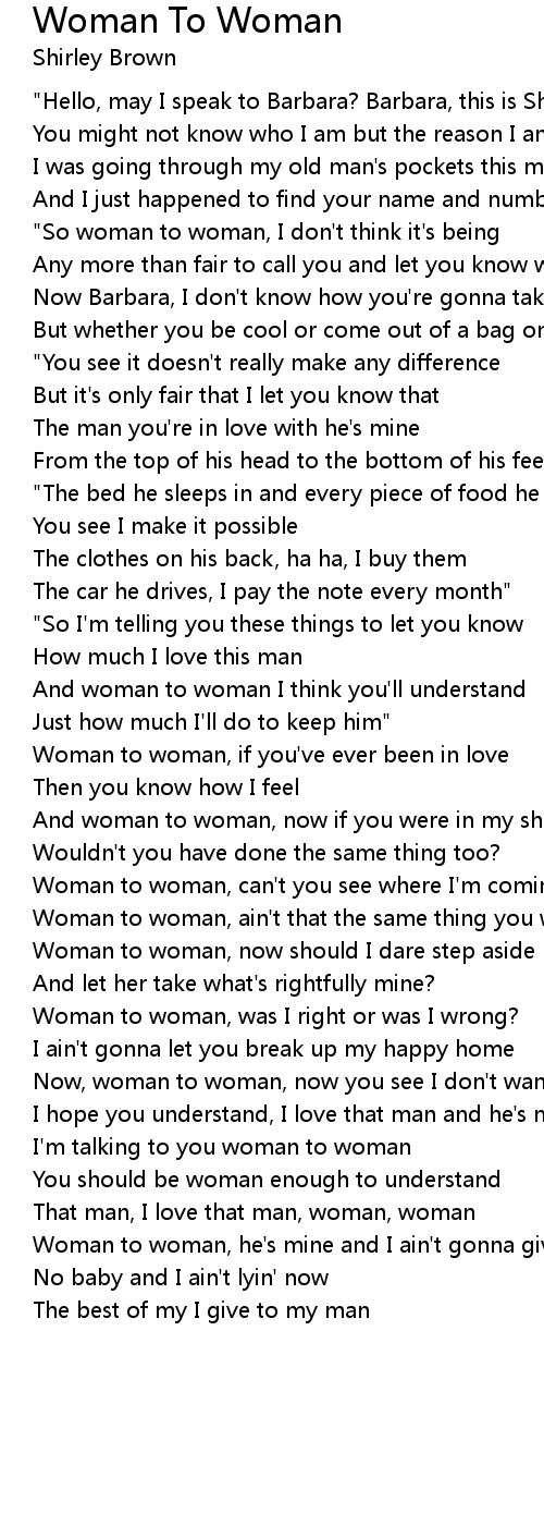 I'm talking to you woman to woman |