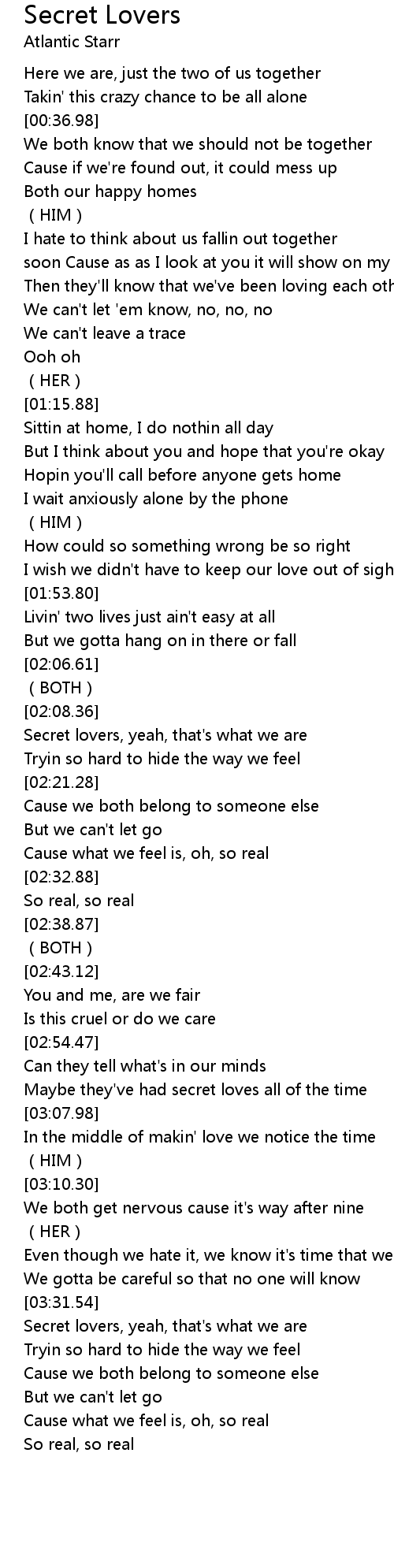 | [03:36.09] | Secret lovers, yeah, that' s what we are |