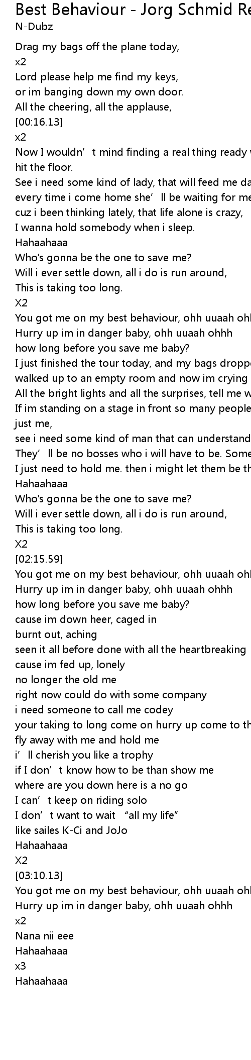 | [03:15.26] | You got me on my best behaviour, ohh uuaah ohhh |
