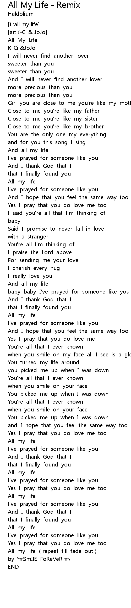 | [05:03.249] | All my life (repeat till fade out) |