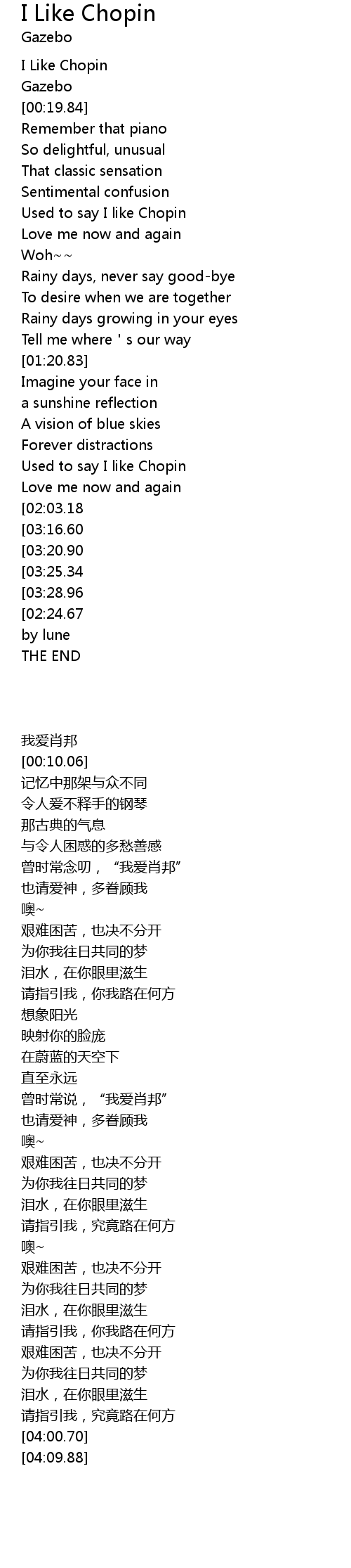 | [00:00.00] | I Like Chopin |