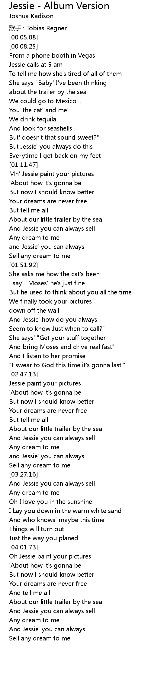 | [01:16.53] | Mh' Jessie paint your pictures |