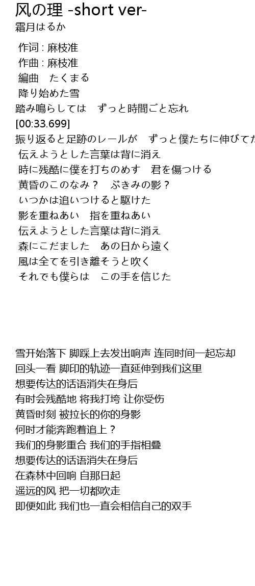 | [01:35.820] | 伝えようとした言葉は背に消え |