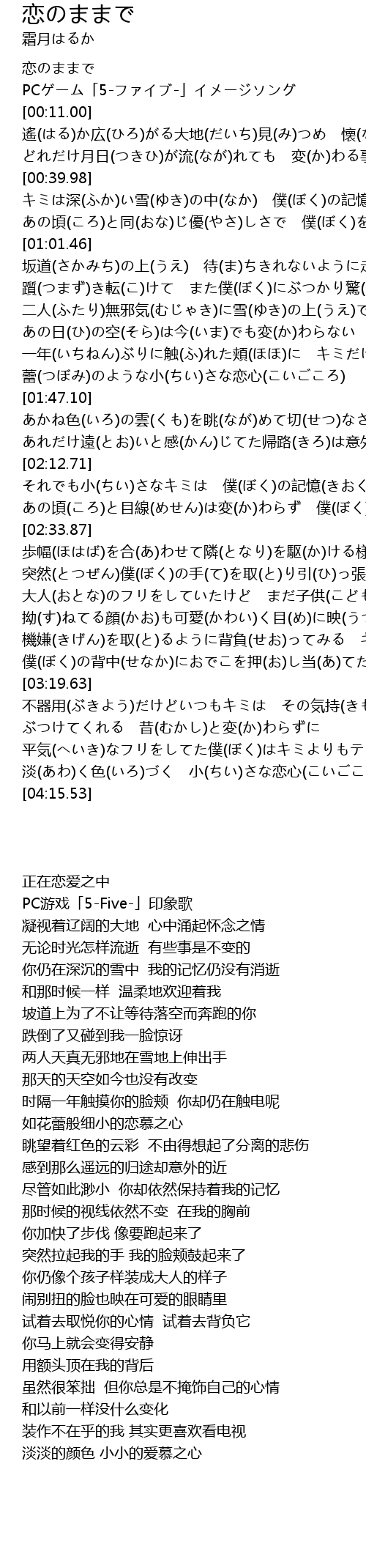 | [00:01.00] | 恋のままで |