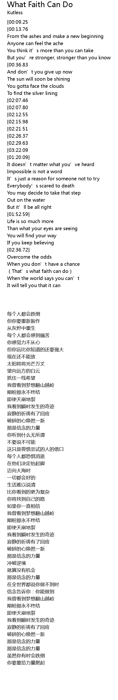 | [03:29.23][03:22.09][02:33.46][01:16.96] | That' s what faith can do |