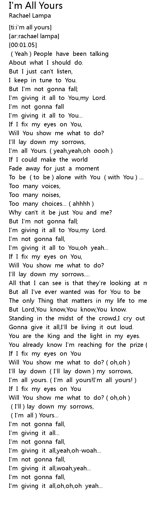 | [01:10.03] | I'm all Yours.(yeah,yeah,oh oooh) |