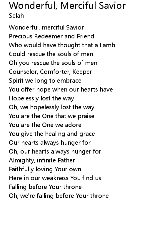 Wonderful, merciful Savior |