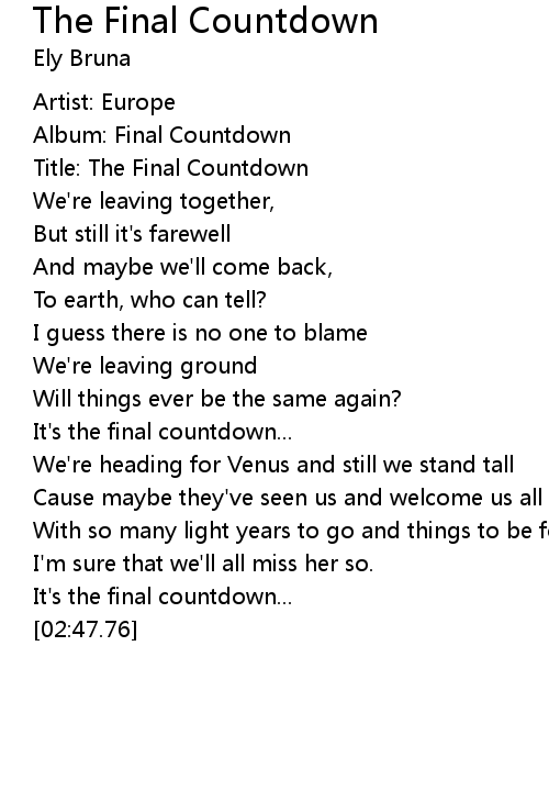 Title: The Final Countdown |