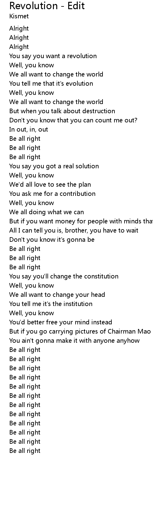 Revolution - Edit Lyrics