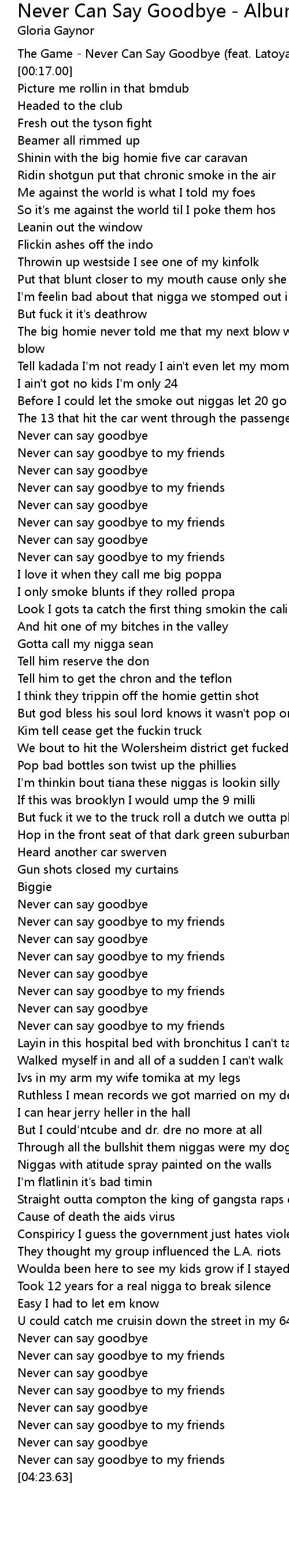 The Game - Never Can Say Goodbye (feat. Latoya Williams) |