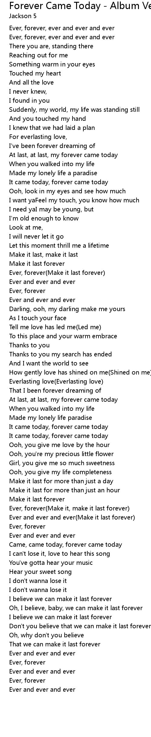 It came today, forever came today |