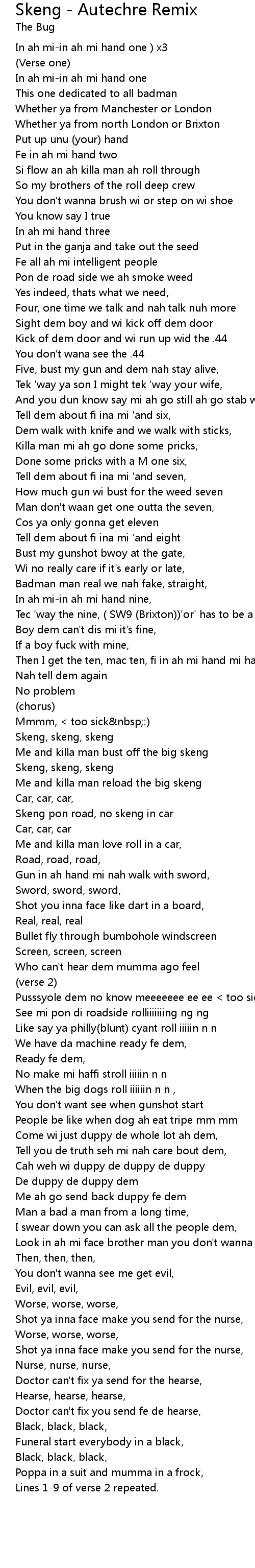 Tec 'way the nine, ( SW9 (Brixton))'or' has to be a 9), tec nine and a tec nine |