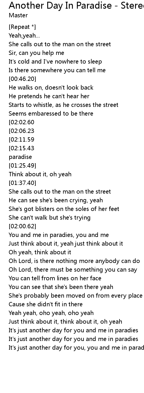 Cause it's another day for you you and me in paradise |