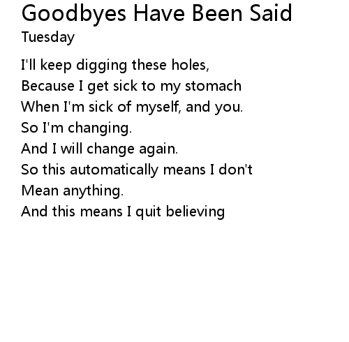 | Song | Goodbyes Have Been Said |