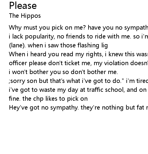 When i heard you read my rights, i knew this wasn't gonna be my day...so, officer please don't ticket me, my violation doesn't deserve a citation. please, i won't bother you so don't bother me. |