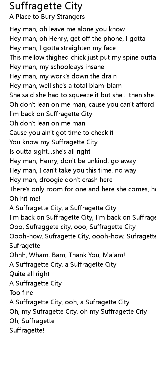 Oooh-how, Sufragette City, oooh-how, Sufragette City, oooh-how |