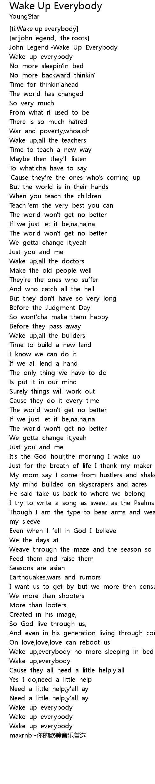 | [00:07.87] | John Legend -Wake Up Everybody |