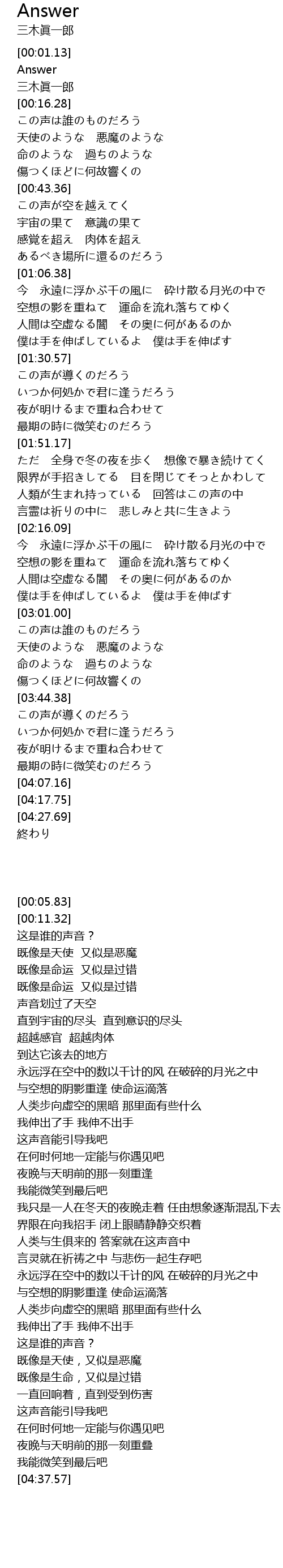 | [02:50.18] | 人間は空虚なる闇 その奥に何があるのか |