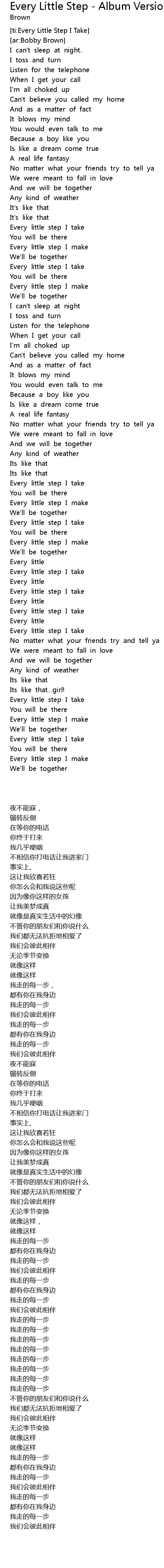 [ti:Every Little Step I Take] |