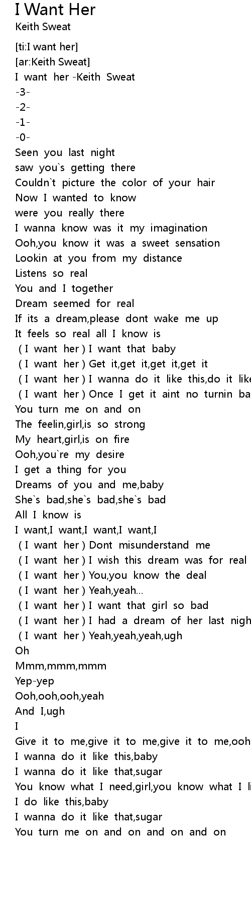 | [01:20.26] | I want her I wanna do it like this, do it like that |
