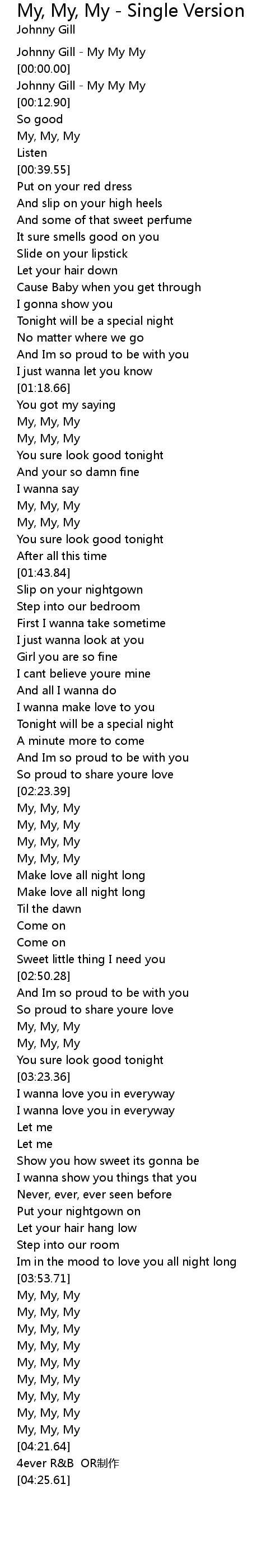 | [00:00.00] | Johnny Gill My My My |