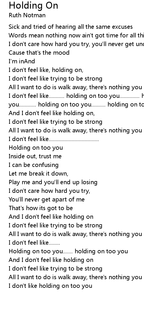 And I don't feel like holding on, |