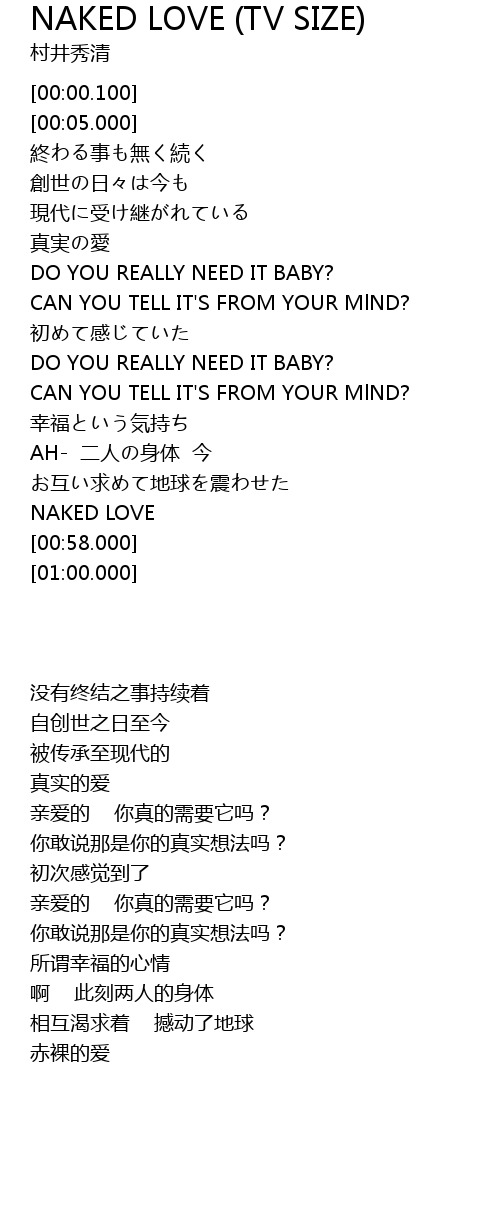 | [00:33.000] | DO YOU REALLY NEED IT BABY? |