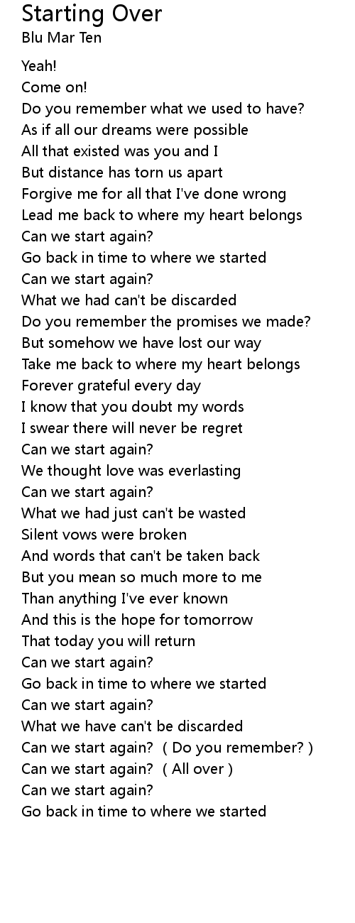 | [03:25.77] | Can we start again? (Do you remember?) |