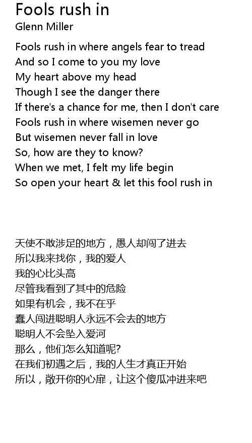 | Song | Fools rush in |