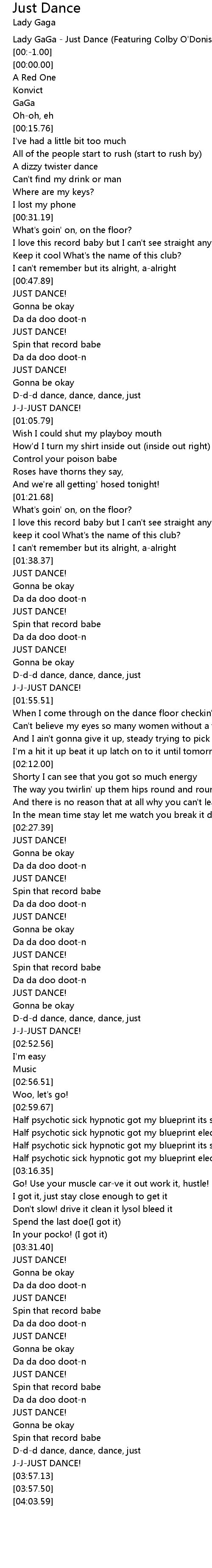 Lady GaGa - Just Dance (Featuring Colby O'Donis) |
