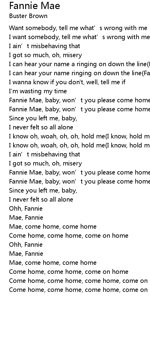 | Fannie Mae, baby, won’t you please come home?(Fannie Mae) | |