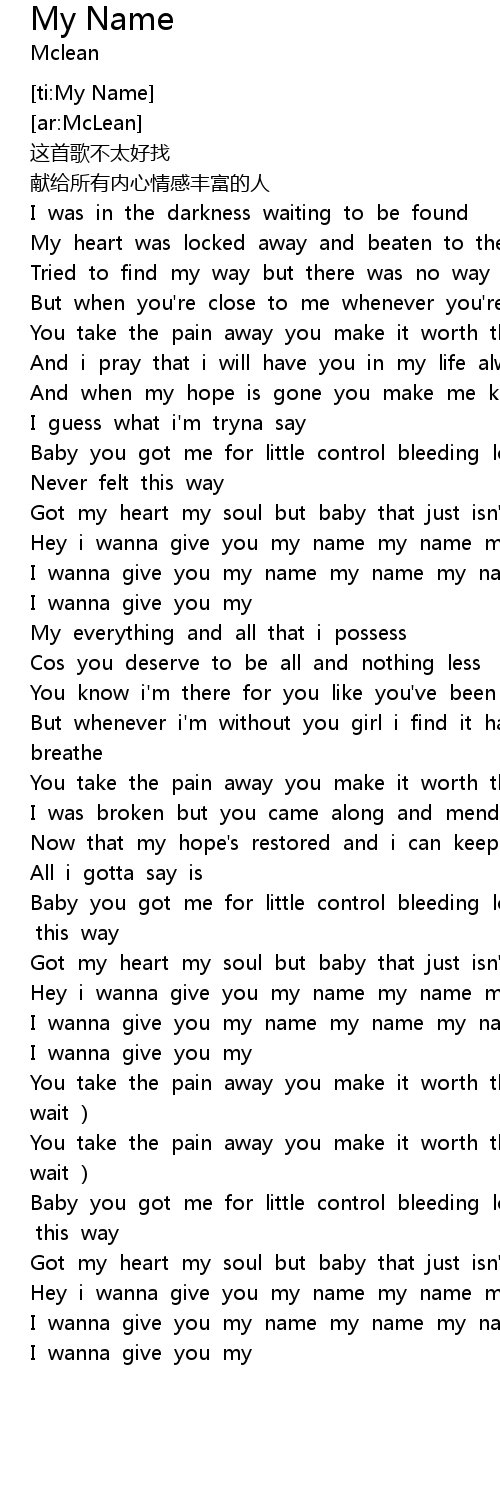 | [01:02.848] | Hey i wanna give you my name my name my name hey |