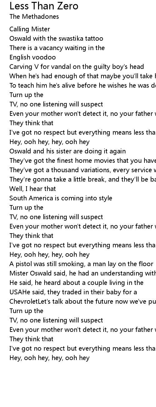 I've got no respect but everything means less than zero |
