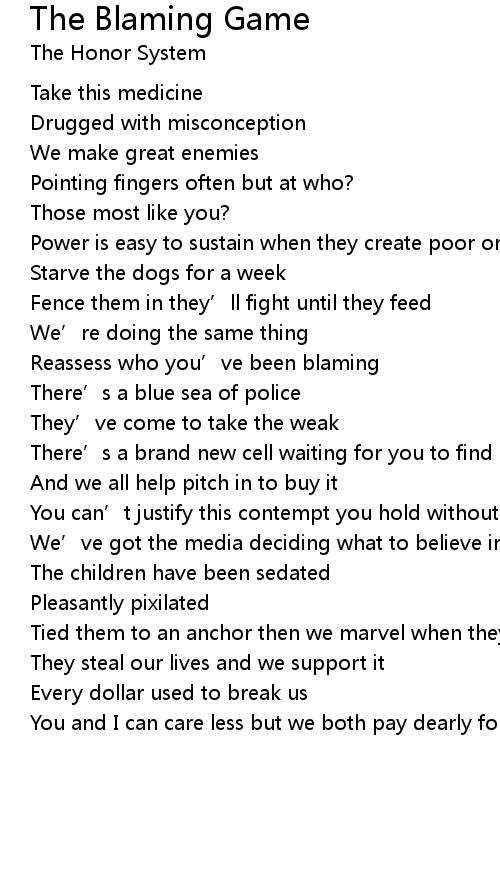 | Song | The Blaming Game |