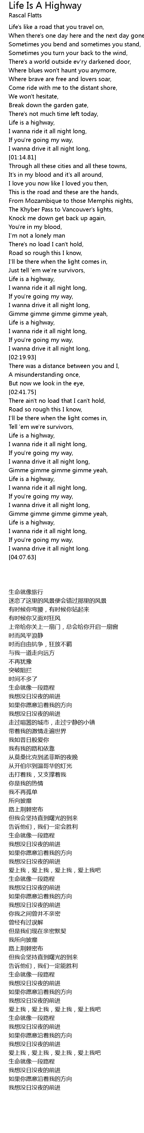 Life is a highway, |
