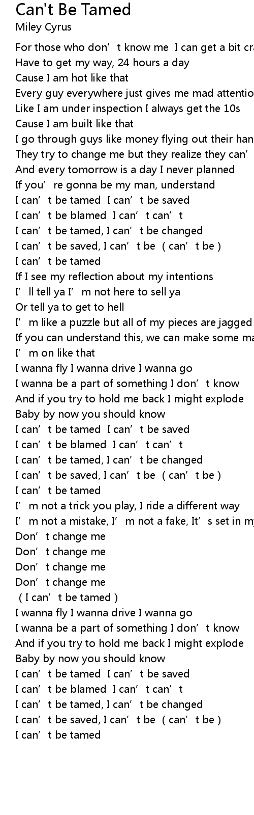 | [00:58.34] | I can' t be tamed |