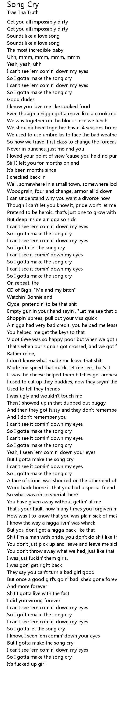 So I gotta make the song cry |