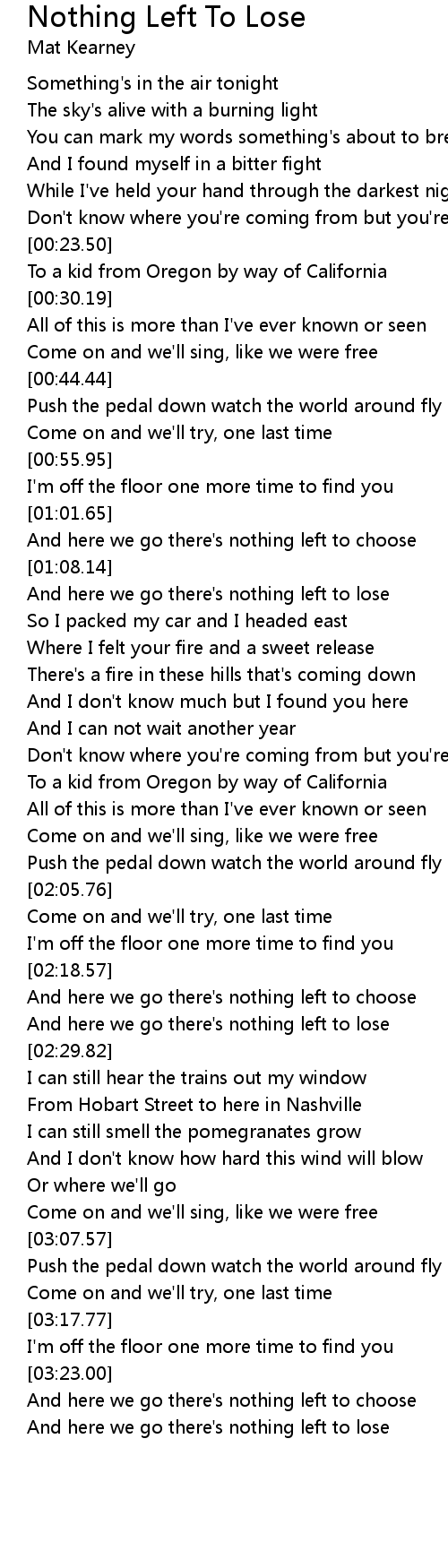 And here we go there's nothing left to lose |