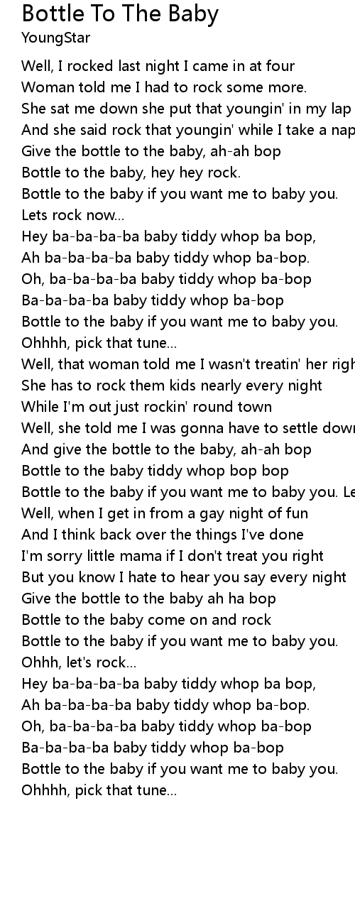 Bottle to the baby, hey hey rock. |