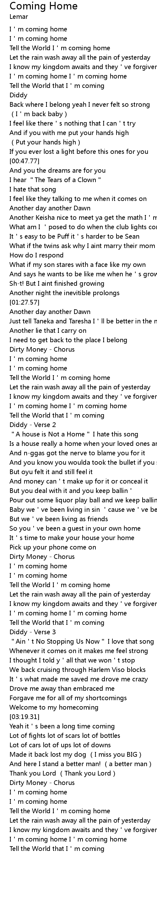 | [03:48.69] | I'm coming home I'm coming home |