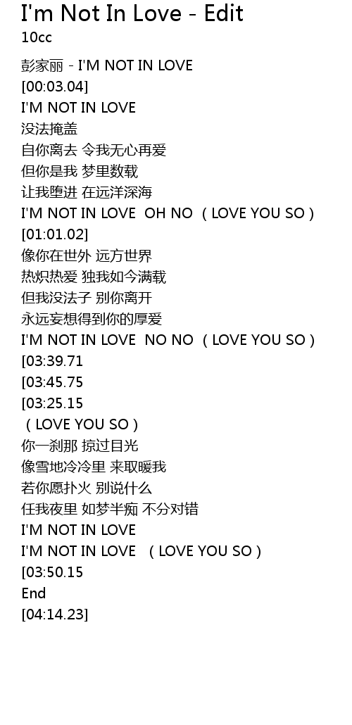 | [00:00.00] | peng jia li I' M NOT IN LOVE |