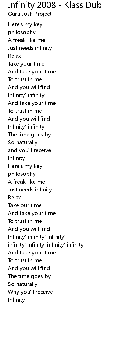 | [02:11.00] | infinity' infinity' infinity' infinity |