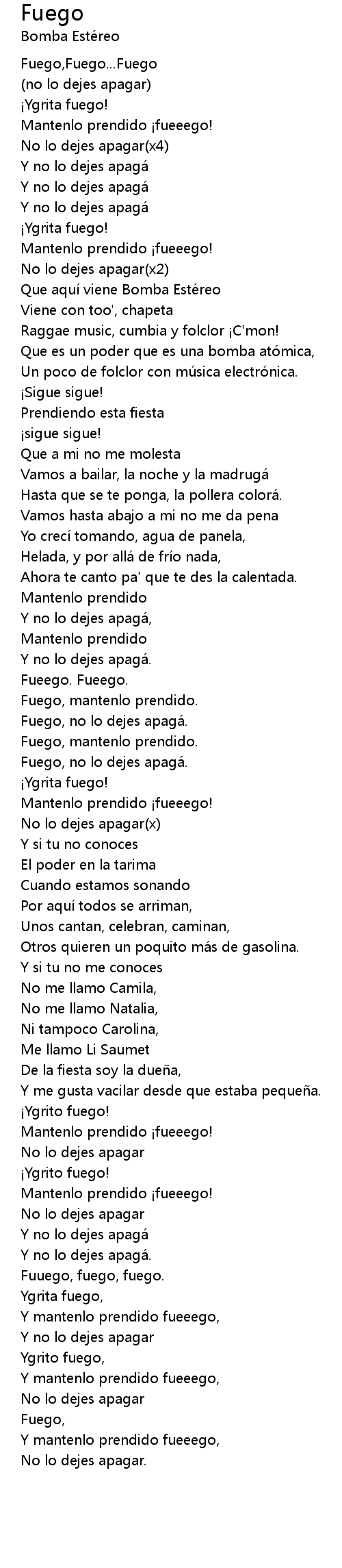 | Fuego, no lo dejes apaga. | |