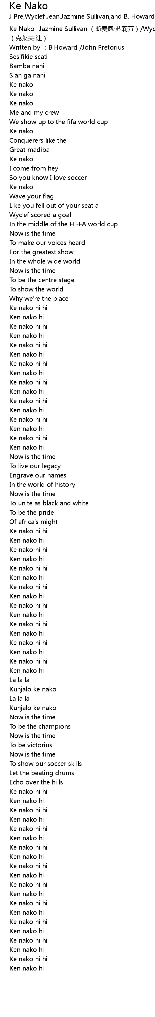 | [00:00.00] | Ke Nako Jazmine Sullivan si mai en su li wan Wyclef Jean ke lai fu rang |