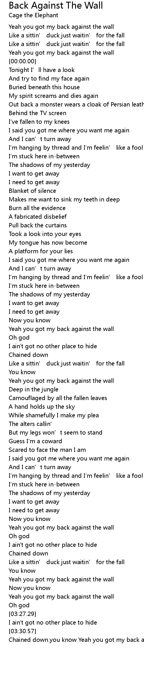 | [03:36.45] | Chained down.you know Yeah you got my back against the wall |