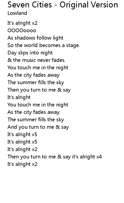 | Song | Seven Cities - Original Version |